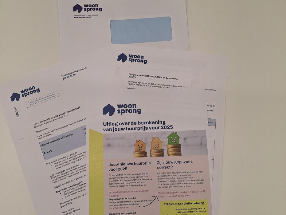 Aan onze huurders: controleer goed jouw gegevens op de brieven in de enveloppe. Correcties kan je tot 16 januari doorgeven. Huurders die via Woonsprong huren, maar in een woning die wij zelf inhuren, krijgen pas later in 2026 een nieuwe huurprijsberekening.