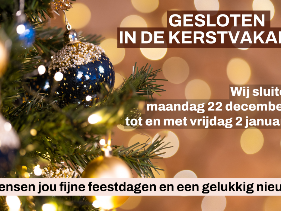 Wij zijn gesloten tijdens de kerstvakantie